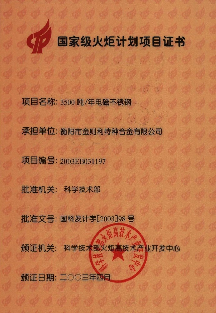 衡陽市金則利特種合金股份有限公司成立于一九九九年十二月,注冊資本人民幣兩千兩百萬元。注冊地址:衡陽市雁峰區白沙洲工業園長塘路2號。公司主營耐蝕軟磁合金,為湖南省高新技術企業。公司自成立以來,即致力于耐蝕軟磁合金的研發。 研制出的JL-31(00Cr13si2Pb)、JL-31B(00Cr13si2)、JL-31BS(00Cr13Si2S)、JL-37B(0Cr17Si2)、JL-37(0Cr17···